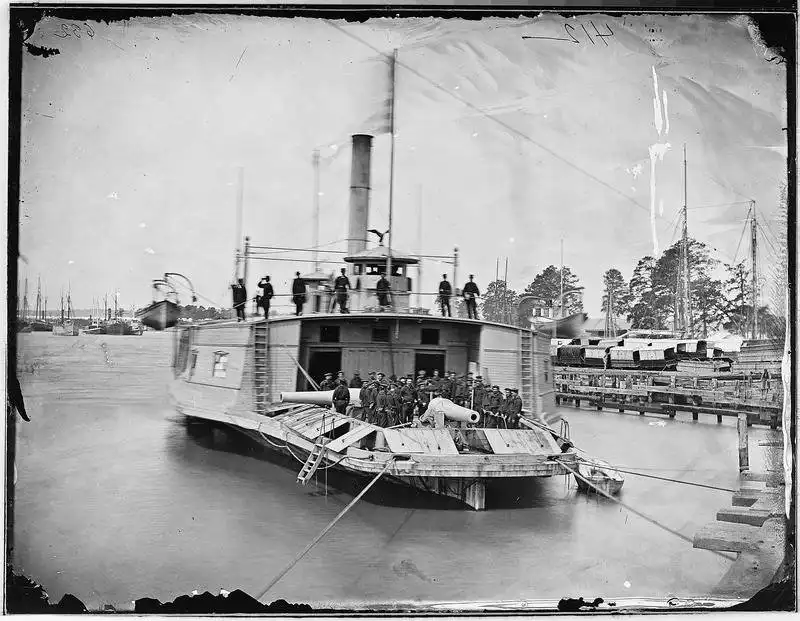 В начале 1861 года давнишние противоречия между Северными и Южными штатами привели к образованию конфедерации 11 южных штатов и расколу Союза. 12 апреля южане-конфедераты обстреляли форт юнионистов-северян Самптер, и вскоре пушки заговорили уже по всей линии Мейсона-Диксона. Инициатива, офицерские кадры и вера в успех - все это было на стороне южан. На стороне северян тоже была вера в успех, численное преимущество, заводы и деньги, а главное – флот! Уже через месяц после объявления войны президентом Линкольном был принят план «Анаконда», который предложил генерал Уинфилд Скотт. Он предусматривал удушение Конфедерации морской блокадой, которая лишила бы ее помощи Европы. Но оказалось, что 12 портов, принадлежавших южанам, блокировать не так-то и легко. Правда, мятежная Конфедерация крупного военного флота не имела, но успешно использовала вооруженные шхуны-рейдеры. 17 апреля президент Конфедерации Джефферсон Дэйвис объявил о том, что любой желающий может получить каперское свидетельство и… грабить на морях себе на здоровье! В результате действиями только лишь трех кораблей южан: «Алабамы», «Флориды» и «Шенандоа» северянам был нанесен ущерб в 15,5 миллионов долларов (в то время как в 1867 году вся Аляска будет приобретена у России всего за семь!), ну а все потери своего торгового флота от действий южных каперов США сумели восстановить лишь только… через сорок лет! Но… южане тоже несли потери, а восстановить их было нечем. Уже в 1862 году кольцо блокады стало намного прочнее, чем вначале, и экспорт хлопка в Англию упал до мизерных объемов. Прорвать блокаду южане пытались разными экзотическими способами. В ход пошли шестовые мины, подводные лодки и пароходы, забронированные кипами хлопка.