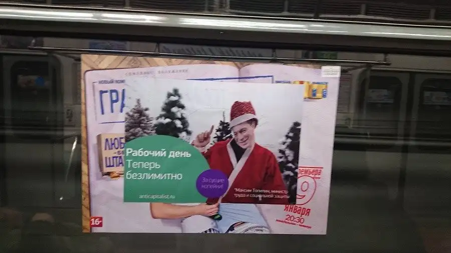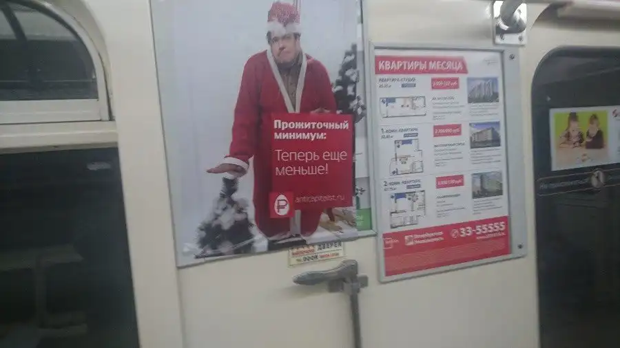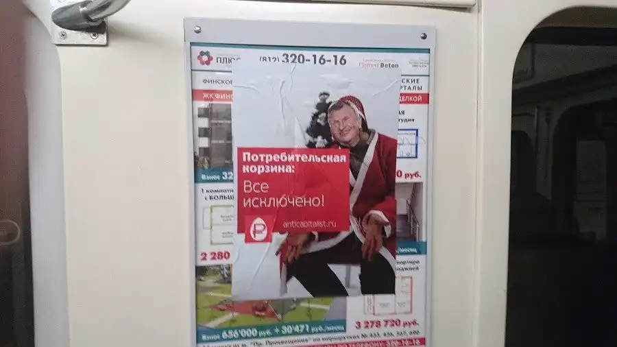 Плакаты связаны с изменениями в ценовой политике петербургского метро, минимальным размером оплаты труда (МРОТ), недавно принятым бюджетом и другими социально значимыми и резонансными темам.