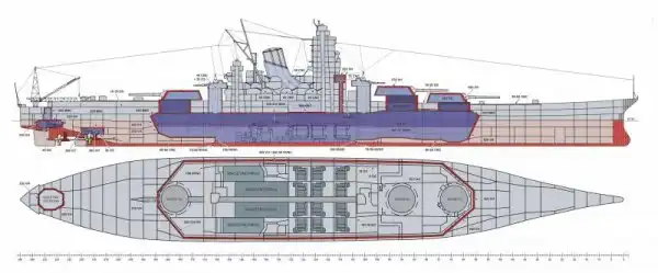 К слову, «Ямато» был также не прост — его ГЭУ имела четырехрядное расположение, при котором бортовые агрегаты прикрывали собой два внутренних ряда котлов и ГТЗА. Однако при столь плотной компоновке создавалась угроза повреждения механизмов, разрывов паропроводов и смещение агрегатов со станин от сотрясений при близких попаданиях торпед.