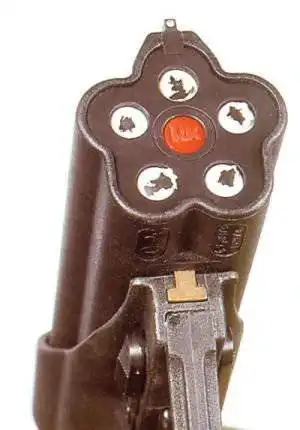 Револьвер Барра, выпущенный в 1969 году, представлял собой простой пистолет с вращающимся бойком и с шестью статичными стволами.