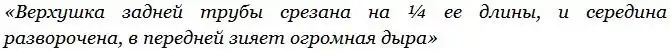 Разорвавшийся ствол орудия "Микаса" крупным планом