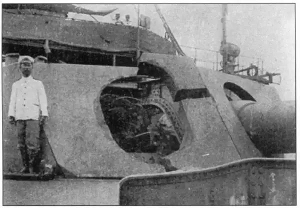 Сначала - о японцах. Всего в их броненосные корабли попало 35-36 снарядов, при этом наиболее пострадавшим оказался флагман Х. Того «Микаса» - он получил 24 попадания. Броненосец получил достаточно неприятные удары, но ничего такого, что угрожало плавучести или боеспособности корабля. Наиболее серьезными повреждениями стало повреждение 178 мм бронеплиты в районе носового барбета, из-за чего броненосец, следуя поврежденным бортом к зыби, мог получить затопления в носовой части, а также вывод из строя кормовой барбетной 305-мм установки.