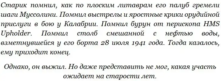 «Джузеппе Гарибальди» - легкий крейсер типа «Дюка делльи Абруцци», спущенный на воду в 1936 году. В отличие от многих ровесников, он благополучно пережил войну и был оставлен в составе итальянского флота. В середине 50-х крейсер неожиданно исчез, скрывшись в доках арсенала Ла Специи. Спустя четыре года оттуда выползло чудовище, у которого от прежнего корабля сохранилось только название и броня.