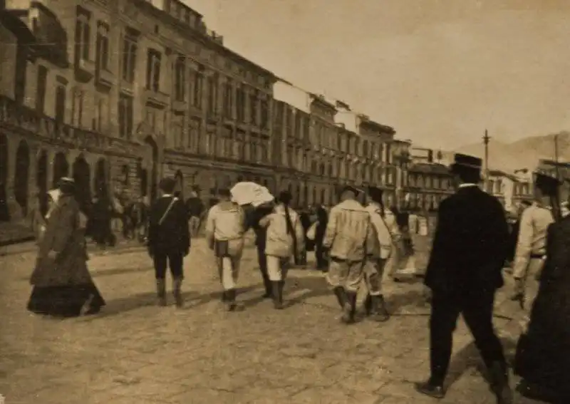 Российские моряки начали расчистку завалов. Работа осложнялась еще тем, что подземные толчки продолжались, обрушения в завалах угрожали жизни моряков, разбирающих остатки зданий.