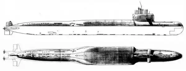 Максимальное надводное водоизмещение составляло 10 500 тонн, подводное – 13 600 тонн, длина лодки – 152 метра, ширина – 15 метров, средняя осадка – 8,7 метра. Рабочая глубина погружения подлодки составляла 320 метров, предельная – 400 метров. Скорость подводного хода – 27 узлов, скорость надводного хода – 16,5 узлов. Экипаж лодки состоял из 112 человек, автономность плавания составляла 70 суток.