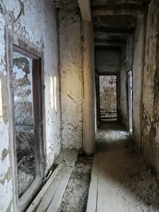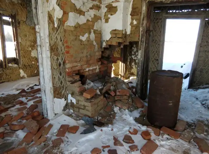 А при взгляде на материал, из которого бараки сделаны, становится зябко. Как написали более сведущие в строительстве люди, такая штукатурка лучше защищает от ветра, чем непроконопаченный сруб, но всё же стены довольно тонкие и вряд ли хорошо держали тепло.