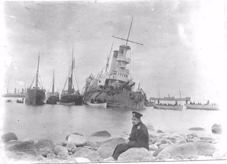 Неожиданно прямо по курсу блеснуло красным - Линдестрем и Дурново решили, что это встречный корабль, и выполнили маневр уклонения. В результате в 3.30 утра экипаж ощутил мягкий толчок по днищу броненосца. Красный свет оказался не кораблем, а как раз маяком, который искал капитан.