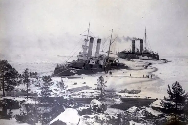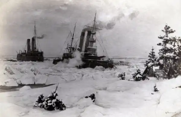 Ледокол «Ермак» спасает броненосец «Генерал–адмирал