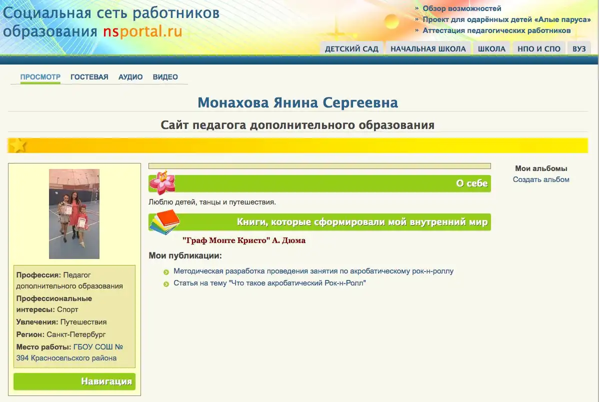 Помимо основной работы детским учителем танцев и хореографии за Яниной Сергеевной числилось ещё одно место работы.
