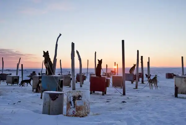 Собаки на Чукотке провожают солнце