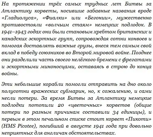 Родоначальник класса «цветочных» корветов — «Гладиолус»,