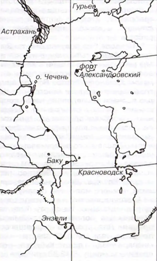 На подходах к Астрахани наиболее важными пунктами (с юга на север) были острова Чечень, Тюлений, Лагань и Четырёхбугорный. Далее начиналась дельта Волги — хитросплетение островов, проток, каналов и отмелей. Море перед дельтой было очень мелким: глубина здесь не превышала 12 сажен (12,8 м), а во многих местах составляла всего 6 футов (1,8 м). Вдобавок самая северная часть Каспия в конце декабря замерзала, и лёд здесь держался до марта. Восточнее Лагани находился так называемый 12-футовый рейд с глубинами не менее 3,6 м, где крупные морские суда перегружали свои товары на мелкосидящие речные пароходы, баржи и лихтеры.