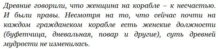 Не от большого ума идут женщины на корабли, потому что жить в сплошном унижении готовы только очень недалёкие люди.