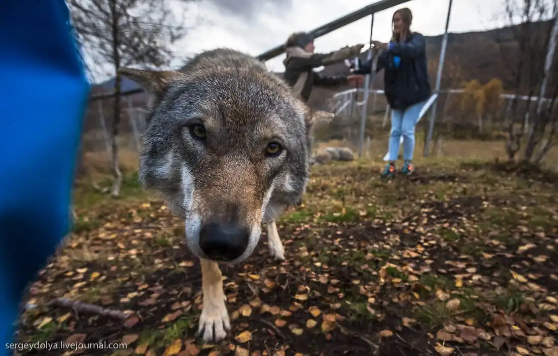 Тебя заводят в огромный вольер, где живут пять взрослых хищников. А затем, если выполнять инструкции сотрудников парка и забыть, что волчья пасть способна переломать бедренную кость лося, можно почувствовать на щеке волчий язык и его дыхание. Оно, кстати, свежее и совершенно не отдает псиной, как могло бы показаться.