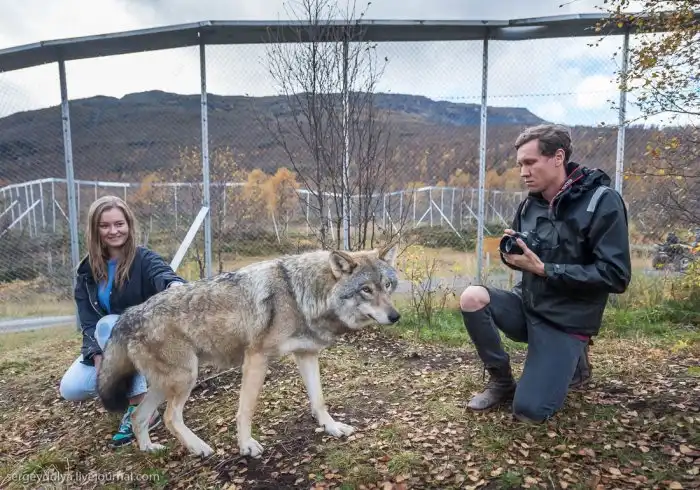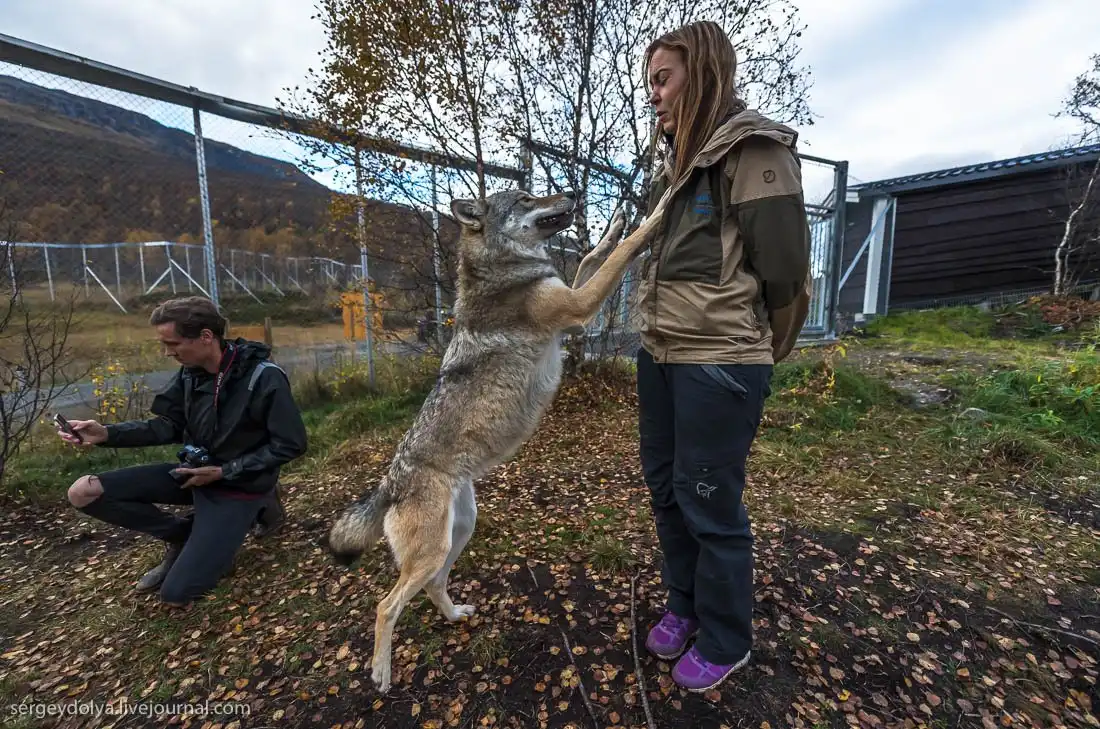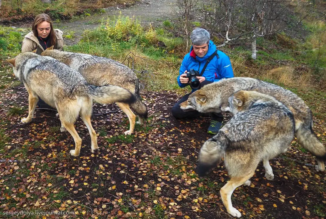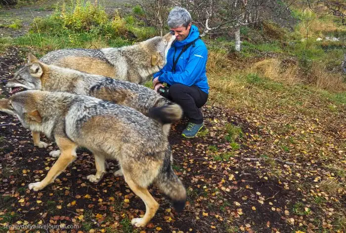 Инструктор сказал, что нужно сесть на колени и ждать, пока волки не освоятся и подойдут поближе: