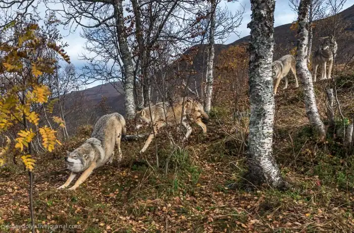 Волки все время ходили рядом с нами. Необычно видеть такого хищника прямо у твоих ног: