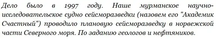 Как и водится у натовских вояк, он не отвечает, но прет на меня. Уже виден силуэт в ночи. Размером с моего "Академика", но наверняка с пулеметами! Против моих аварийных ракетниц. Но мы же в тельняшках! Я решил: не уступлю нипочем, пока на столкновение не пойдет. Вражина уже даже отвечать начал. И тоже не уступает, тоже видать, лицо боится потерять... Начал уже требовать, чтобы я капитана разбудил. А я говорю — капитан отдыхает, а я первый начал тебя звать — уступай! Если бы был день, мы бы разобрались с врагом просто. Спустили бы скоростной катер, проехали бы мимо борта, прочитали название, и на всё Северное море вызвали бы его по секретному имени на борту. Очень натовцы этого не любят, даже жалуются куда-то там в Брюссель по этому поводу. А у нас это своего рода спорт. Но тут ночь, катер не спустишь.