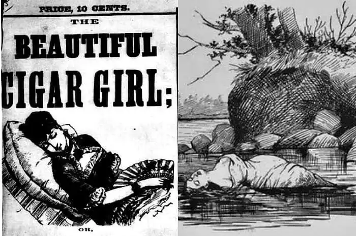 Смерть жительницы Нью-Йорка Мэри Роджерс вошла даже в историю литературы: Эдгар По написал о ней свой последний рассказ, так и названный - "Загадка Мэри Роджерс". Мэри была из бедной семьи и работала в магазине сигар. Однако она была настоящей красавицей, и немало богатых покупателей делали ей всяческие авансы - включая, между прочим, писателей Вашингтона Ирвинга и Джеймса Фенимора Купера. Но в 1841 году Мэри пропала. Вскоре ее тело было найдено в реке Гудзон около Хобокена. Сначала полиция считала убийцей жениха Мэри, Дэниэла Пейна, но у него было железное алиби. Версия о смерти от нелегального аборта тоже не подтвердилась. Смерти Мэри осталась загадкой.