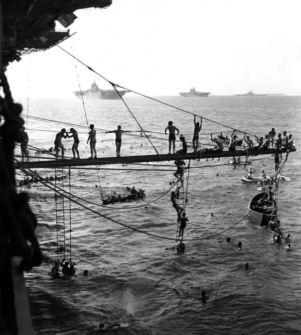 Представленные кадры хроники, снятые летом 1944 года, сохранили работу артиллеристов башен главного калибра линкора — их было три, и в каждой размещалось три 406-мм орудия. Интересен вид артиллеристов, одетых в белые подшлемники, снижавшие риск получения ожогов при пожаре, не менее интересна и цель, по которой ведет огонь линкор. В 1940 году немцы захватили в Ла-Манше Нормандские острова, которые находились под британской юрисдикцией. Именно по немецким береговым батареям на острове Олдерни и стрелял летом 44-го «Родни» — хотя немецкий гарнизон на острове капитулирует только 16 мая 1945 года…