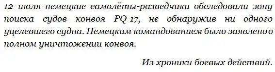 Вечером 4 июля 1942 года британское Адмиралтейство сняло охранение конвоя PQ-17, предложив транспортам самостоятельно пробиваться в русские порты. Военный флот отошел полным ходом на Запад.