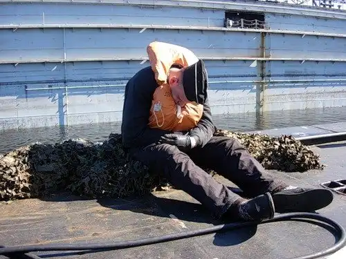 Те, кто рядом был, взметнулись молниеносно, а медик… дальше всех наслаждался, а что он там видит? Да ничего, только слышит и верит, и инстинкт, сработав, заставил такие буруны поднять, аж, чуть лодка не покачнулась. Торпедой к корпусу вылетел, но не взвился, трап вытащили (по замковской команде), и как сказал мой родственник: обшивка у него из под ногтей серпантином пошла. Такого никто никогда ранее не видел. Жутко было смотреть…