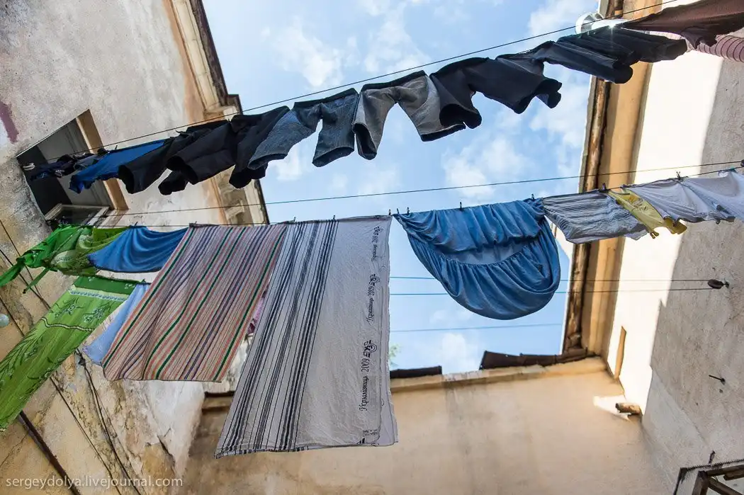То тут, то там развиваются разноцветные паруса простыней и пододеяльников: