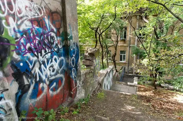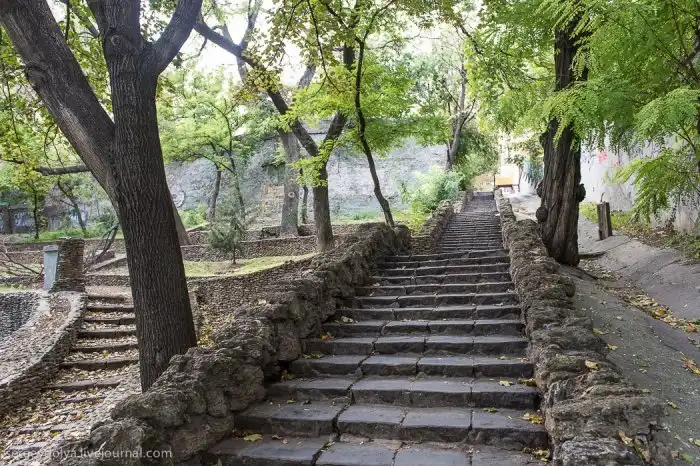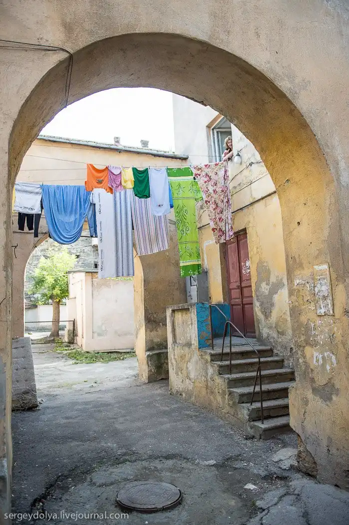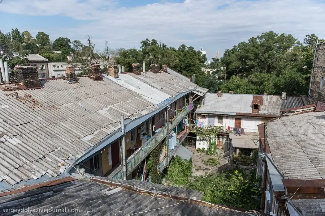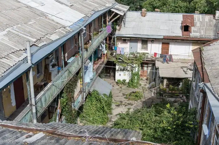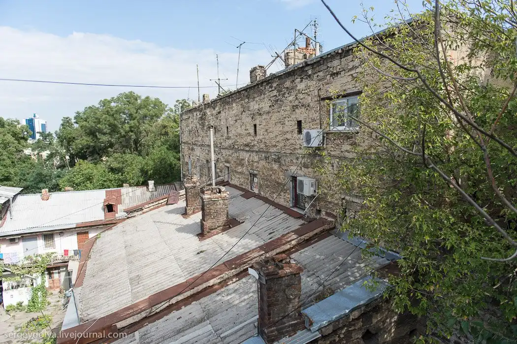 Типичный дворик Жванецкого, так, как я его себе представляю. Жванецкий рассказывал такую шутку: "Меня очень легко найти: заходите ко мне во двор и громко несколько раз кричите: "Рабинович!" Откроются все окна, кроме одного - это и есть мое":