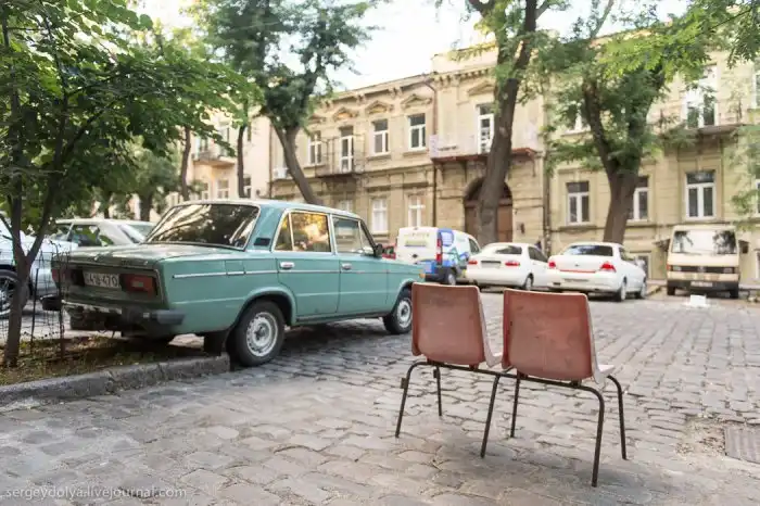 На улице заметили стулья. Видимо, в отсутствии лавочек, народ потихоньку выносит из дома мебель для вечерних посиделок: