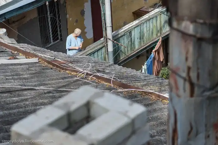 В конце улицы наш проводник показал специальный дом. Мы забрались на крышу и сфотографировали центральную часть города с высоты. Типичная картина: низкая застройка изуродована пестрым высотным новоделом: