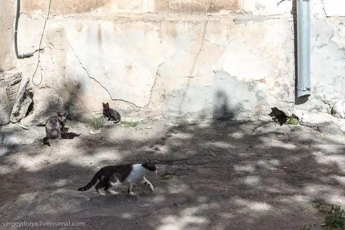 Во дворах, да и во всей Одессе, безумное количество кошек. Их любят, кормят и даже не прогоняют из ресторанов, когда те забираются внутрь: