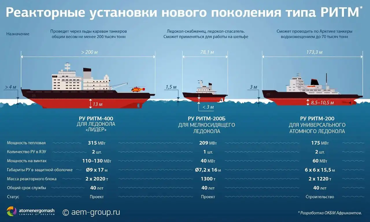 Согласно предположениям специалистов Крыловского центра, появление нового атомохода сделает возможным круглогодичное курсирование вдоль российских берегов Арктики танкеров класса «Афрамакс» с нефтью или газовым конденсатом на борту. Благодаря сверхкрупным размерам эти грузовые суда гарантируют снижение себестоимости транзита по Северному морскому пути.