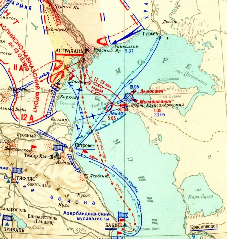 Противник возле Астрахани не появлялся и инициативы не проявлял, поэтому 26 апреля флот перешёл на 12-футовый рейд. В. И. Ленин срочной телеграммой потребовал от Реввоенсовета 11-й армии выяснить вопрос о взятии Петровска и устья реки Урал «для взятия оттуда нефти». Поэтому командующий флотилией С. Е. Сакс (бывший прапорщик по морской части) приказал своему штабу разработать операцию по захвату Петровска. В ответ начальник оперативной части штаба военмор М. Н. Попов доложил, что флот может сделать это, но «удержать Петровск, не имея армии — сомнительно. С политической точки зрения, если мы понесём под Петровском неудачу… то политика дружественно к нам расположенных горских племён резко повернёт в другую сторону, а результаты этого слишком известны».