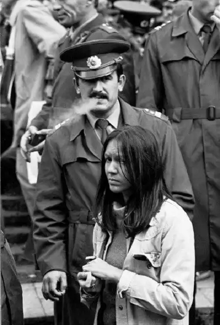 Посмотрим на зрителей. Этот кадр подписан как Олеся Троянская. Известная в узких кругах певица, обладавшая шикарным голосом. Не знаю действительно ли это она или нет. Если действительно она, то это одна из немногих фотографий певицы. Сегодня её уже тоже нет с нами.