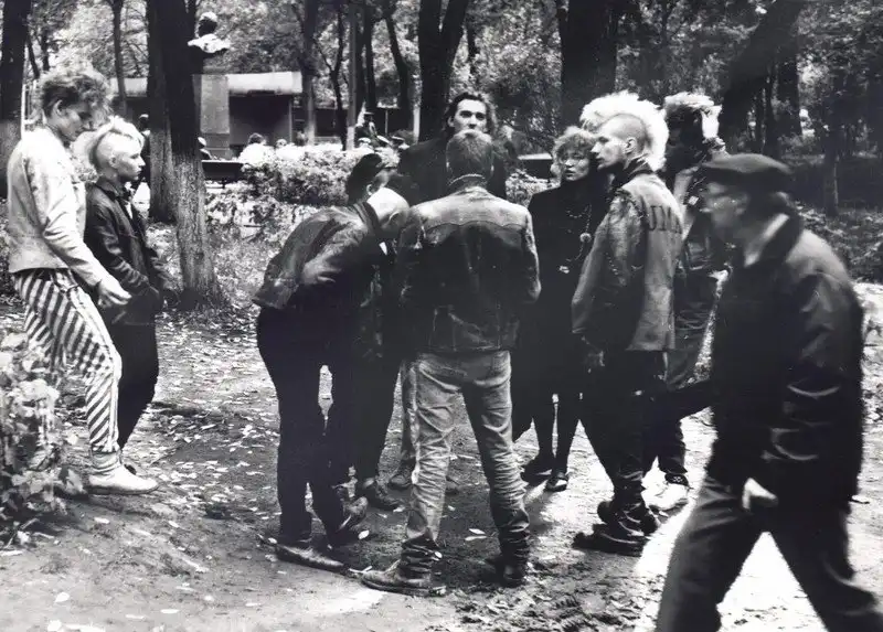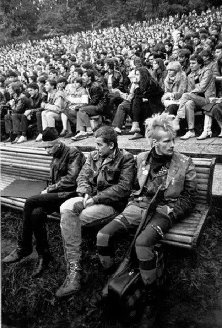 Гости из Прибалтики. «J.M.K.E.» и сочувствующие. Я слабо себе могу представить, как они шокировали прохожих. Ирокезы и в 90-х не такое уж частое явление, а в 87-ом году…