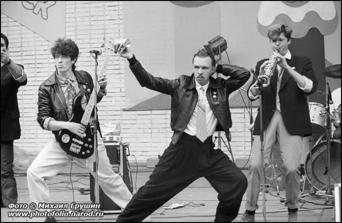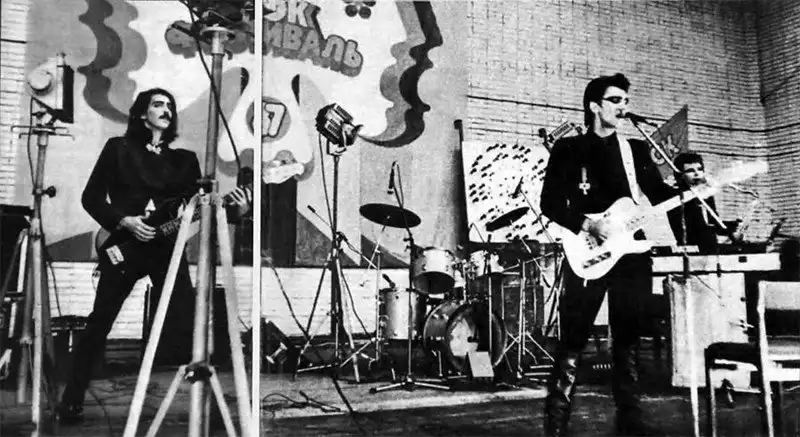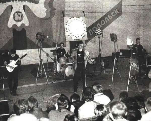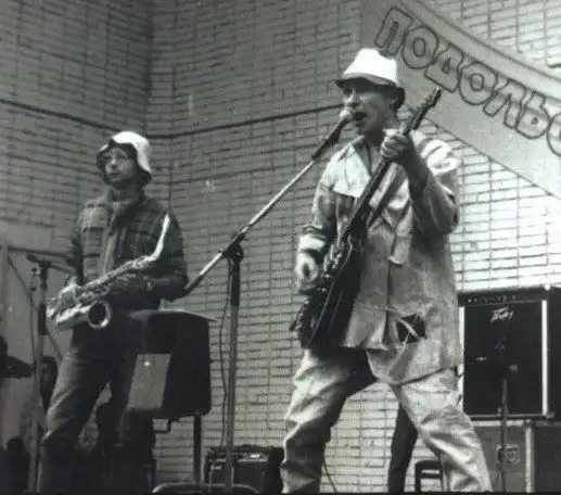 Это когда-то известная, а ныне почти забытая группа «Телевизор». Михаил Борзыкин сегодня вместо занятий музыкой предпочитает ходить на всякие «Марши несогласных». На мой взгляд, зря. Когда-то у него был большой потенциал. С концертами группа объездила не только города СССР, но и каталась в Данию, Бельгию, Францию, Италию. Сегодня играет в лучшем случае в клубах для сотни человек в Москве и Питере.