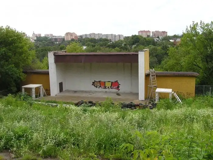Фестиваль проходил в «Зелёном театре» подольского городского парка имени Виктора Талалихина. История самого парка уходит аж в 19 век. Так что по-своему это историческое место и без всяких рок фестивалей. Сцена в середине нулевых в парке выглядела как-то примерно так.