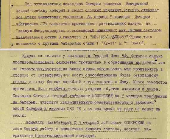 Из письма Мошенского: «Живу по-боевому. Спешу разделить с тобой радость: я награжден орденом Красного Знамени. Никогда не думал, что мне выпадет такая честь, а вчера об этом узнал, говорят, что хорошо бью немцев, за это и наградили…»