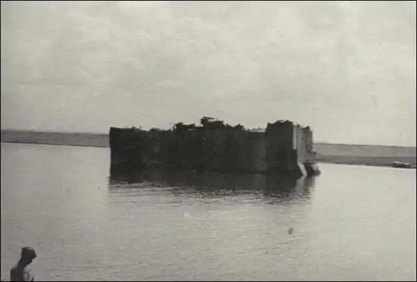 Корпус плавбатареи на отмели в Казачьей бухте, июль 1942 г.