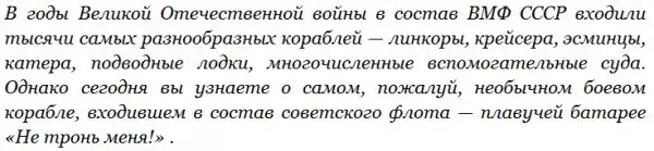 В экспозиции Музея Черноморского флота в Севастополе целый зал посвящен героической 250-дневной обороне города от немецких войск в 1941-1942 гг. Моряки Черноморского флота и жители города совершили немало подвигов, защищая севастопольские рубежи. Посетителям музея о них рассказывают многочисленные экспонаты, фотографии и реликвии военной поры. Есть среди них небольшая фотография, мало что говорящая обычным посетителям. Она подписана так — капитан-лейтенант С.А.Мошенский, командир плавучей батареи №3. Чем он прославился, что за плавбатарея № 3, какие подвиги совершил её экипаж не уточняется. Больше никакой информации об этом корабле в экспозиции музея, к сожалению, нет.