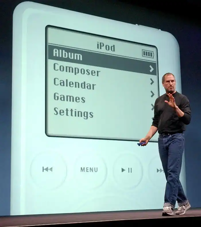 Философия дизайна Джобса – постоянное упрощение. При разработке самых первых моделей iPod’а он велел дизайнерам избавиться от кнопок, включая кнопку включения и выключения устройства. Дизайнеры пожаловались-пожаловались и разработали ставшее впоследствии культовым колесо прокрутки. (Anonymous / AP Photo)