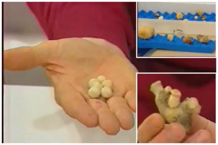 Отложения солей кальция, мочевой кислоты и цистеина формируют камни в почках. Камни причиняют невыносимые боли. Камни выходят либо самостоятельно, либо во время операции их удаляет хирург. Самый большой камень, что был удален у пациента, в диаметре составлял 15 см.