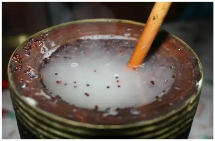 Тонгба – это напиток Непала и Индии. Каша из различных зерен варится, потом некоторое время бродит, туда добавляют травы и оставляют в специальном месте до засыхания. Затем высохшую смесь заливают кипятком и пьют через специальную деревянную трубку. Хотя крепость напитка около 6-8 градусов, пьют его заваривая несколько раз подряд и опьянение вполне вероятно.