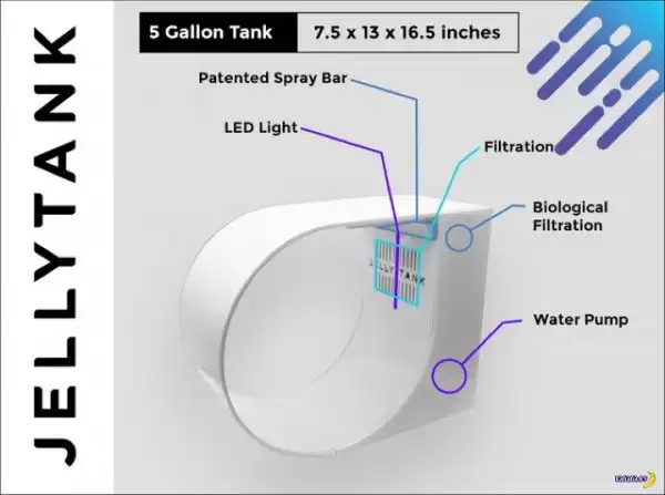 Всё пришлось создавать с нуля, так как обычный аквариум был бы не для содержания медуз, а для их убийства. Аквариум JellyTank создавала целая команда. В нём автоматически поддерживается определенная температура, уровень соли, и ряд других параметров. Есть циркуляция воды через специальные фильтры, но 20% воды нужно менять раз в неделю. Есть специальный корм для медуз, который подаётся в воду. В комплекте с аквариумом идет четыре небольших медузу, которые живут около года. Интересно, что если кормить медуз больше нормы, они заметно увеличиваются в размерах.