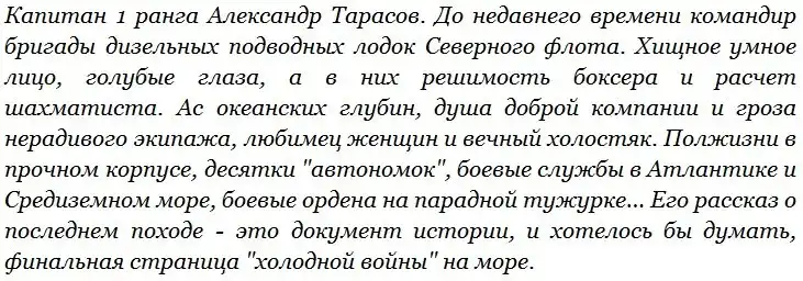 - Летом 1992 года мне было приказано перегнать новую подводную лодку из Севастополя на Север при чем самым ускоренным порядком. Лодка типа "Варшавянка" только что со стапелей, необкатанная, сырая с неотработанным экипажем. А поход нешуточный - вокруг Европы, через два океана. Приказ есть приказ. Вышли в море, по дороге доучимся. Хорошо еще, что переход открытый - в надводном положении.