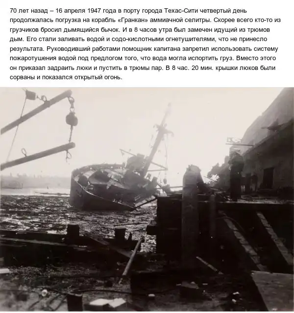 16 апреля исполнилось ровно 70 лет со дня техногенной катастрофы в американском городе Техас-Сити. Возгорание нитрата аммония (аммиачной селитры) привело к серии взрывов и пожаров, из-за которых погибли сотни людей, а город был практически полностью разрушен. Подробности той страшной трагедии ждут вас далее.