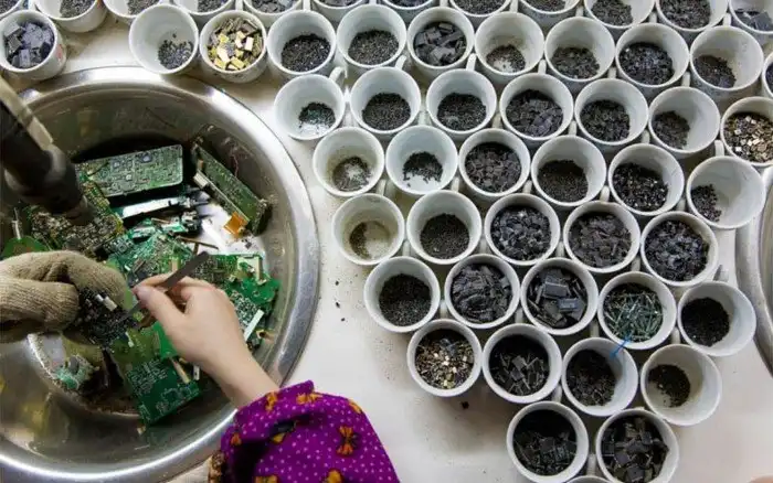 Потому что механизм неручного разбора электронных отходов на фракции еще не изобрели.