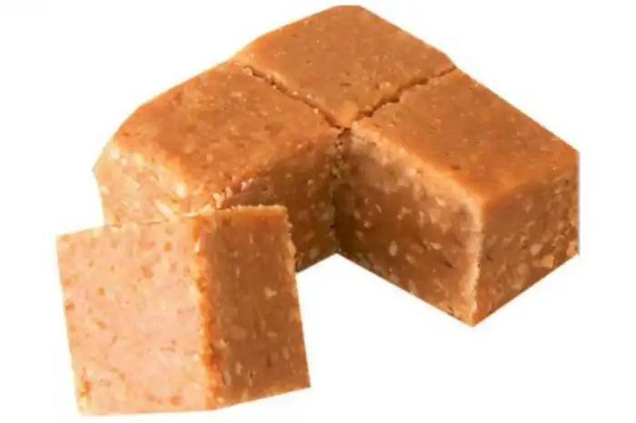 Вареная сгущенка, сливочное масло, немного густой сметаны, орехи (по вкусу), печенье. Взбить сгущенку с растопленным маслом, перемешать с орехами и покрошенным печеньем, выложить горкой, посыпать маком (по вкусу)