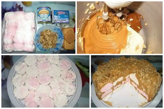 Торт с зефиром (принцип тот же, что и предыдущие, но вместо печенек -зефирки)