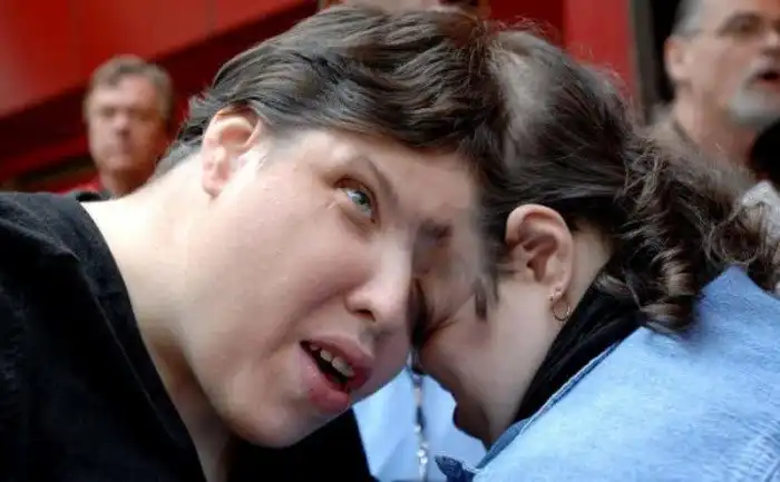 История Ладан и Лалех очень печальна. Они родились со сросшимися головами и никогда не видели лиц друг друга. В 29 лет они решились, несмотря на риск, подвергнуться операции по разделению. Увы, после 50 часов операции на мознге сиамские близнецы умерли от массированной кровопотери.