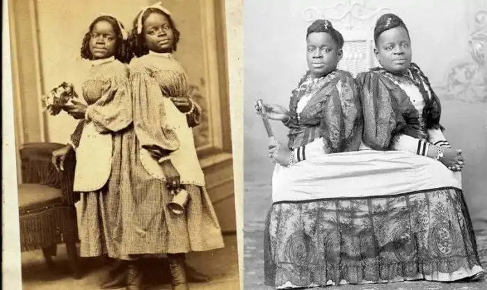 Милли и Кристин называли "двухголовым соловьем". Они родились в семье рабов в Северной Каролине. В десять месяцев хозяин продал их владельцу цирка уродцев за долю в его предприятии. В 1863 году Милли и Кристин вместе со всеми американскими рабами обрели свободу. Путешественник-британец, случайно встретивший девочек, стал их благодетелем: он помог им найти мать, а затем увез всех троих в Британию. Там Милли и Кристин встречались с королевой Викторией, выучили несколько языков и сделали отличную карьеру в индустрии развлечений. Публика ценила их не как уродцев, а как отличных певиц. В 61 год Милли и Кристин умерли от туберкулеза с разницей в 12 часов.